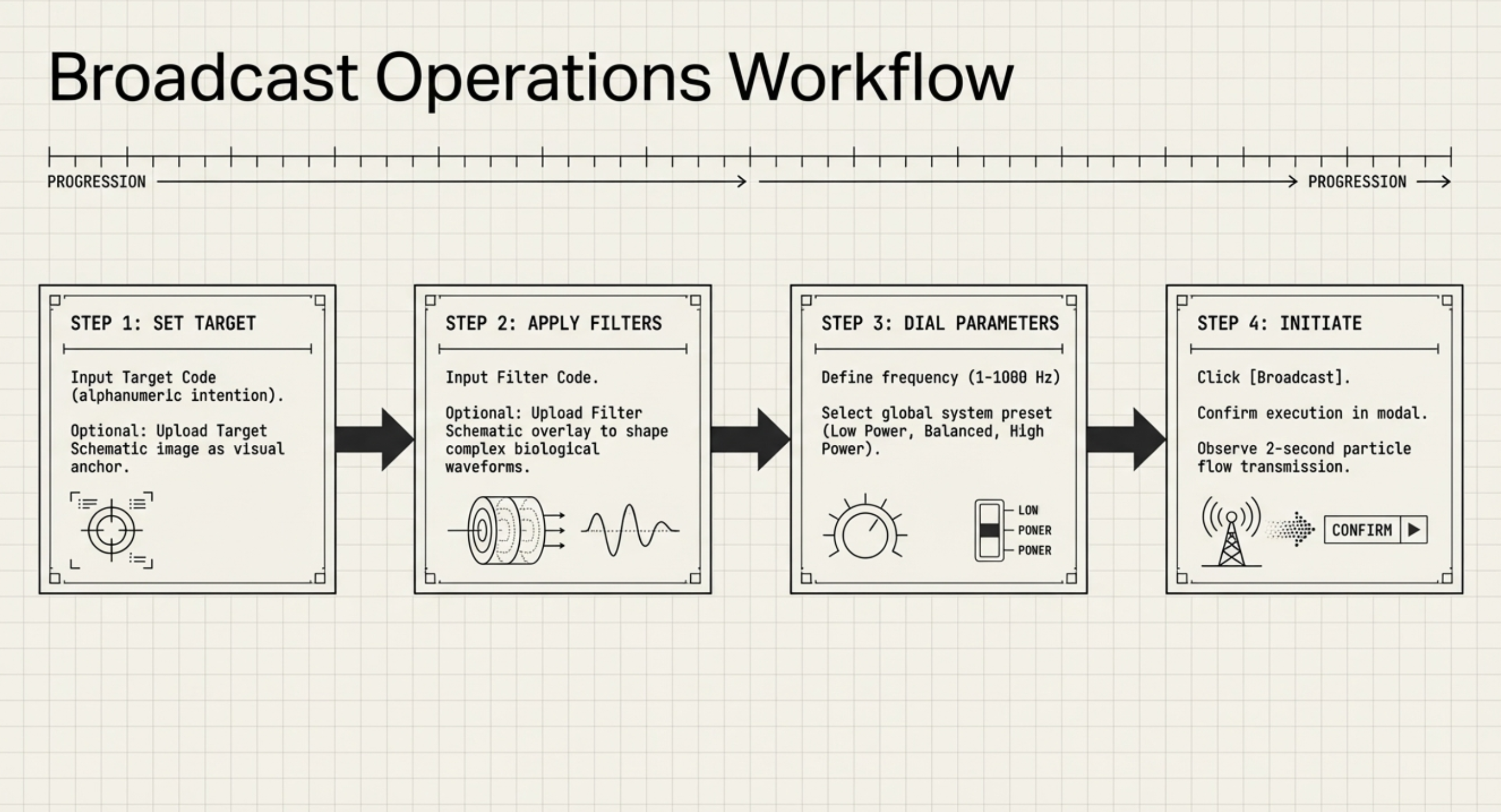 Each node of the system is associated with a targeted broadcast profile, a color signature, and a functional intent. Foundation precedes expansion. Stability precedes amplification.