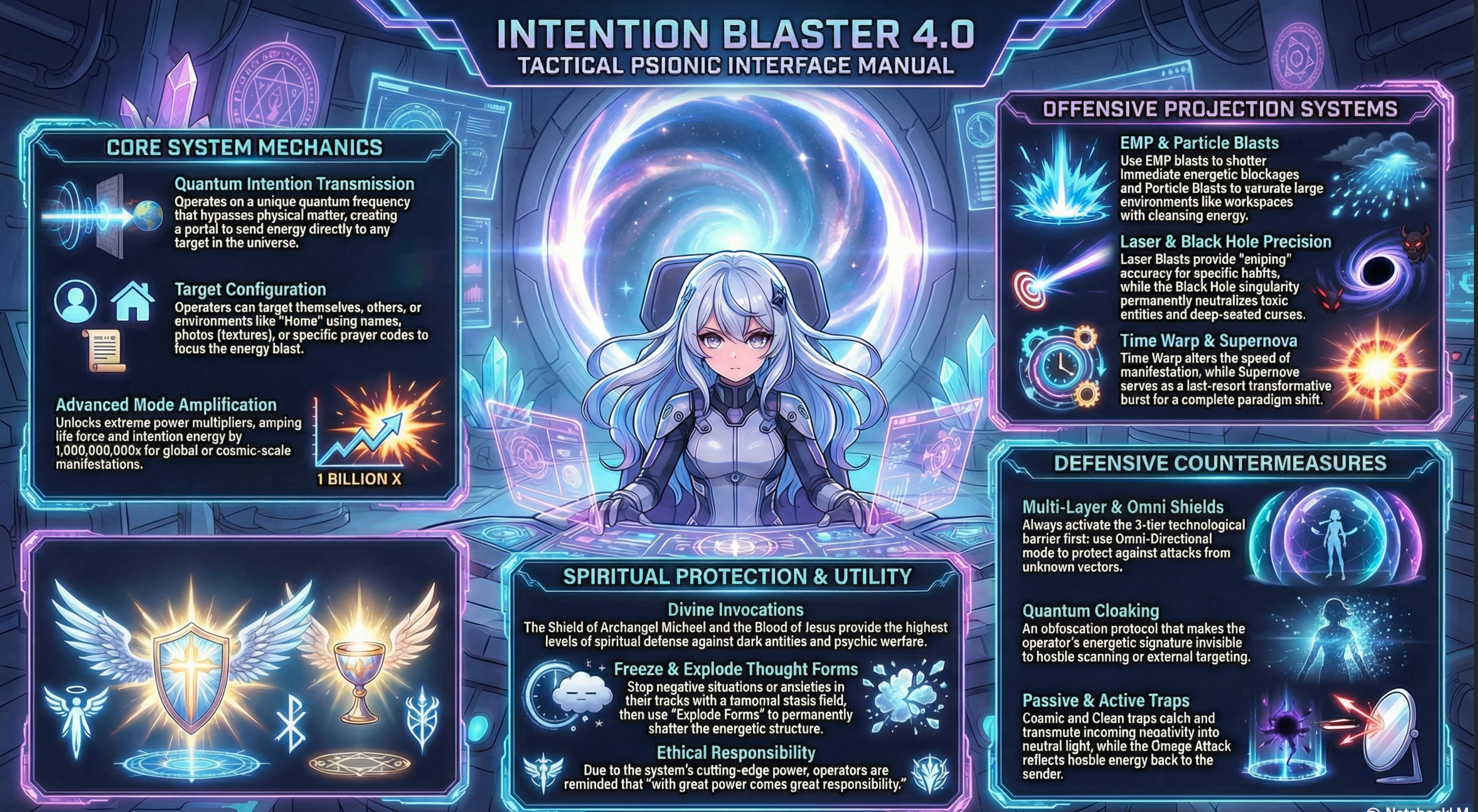 Whether your goal is inner alignment, environmental clearing, spiritual fortification, or concentrated manifestation work, Intention Blaster 4.0 gives you a command-style interface for your practice.