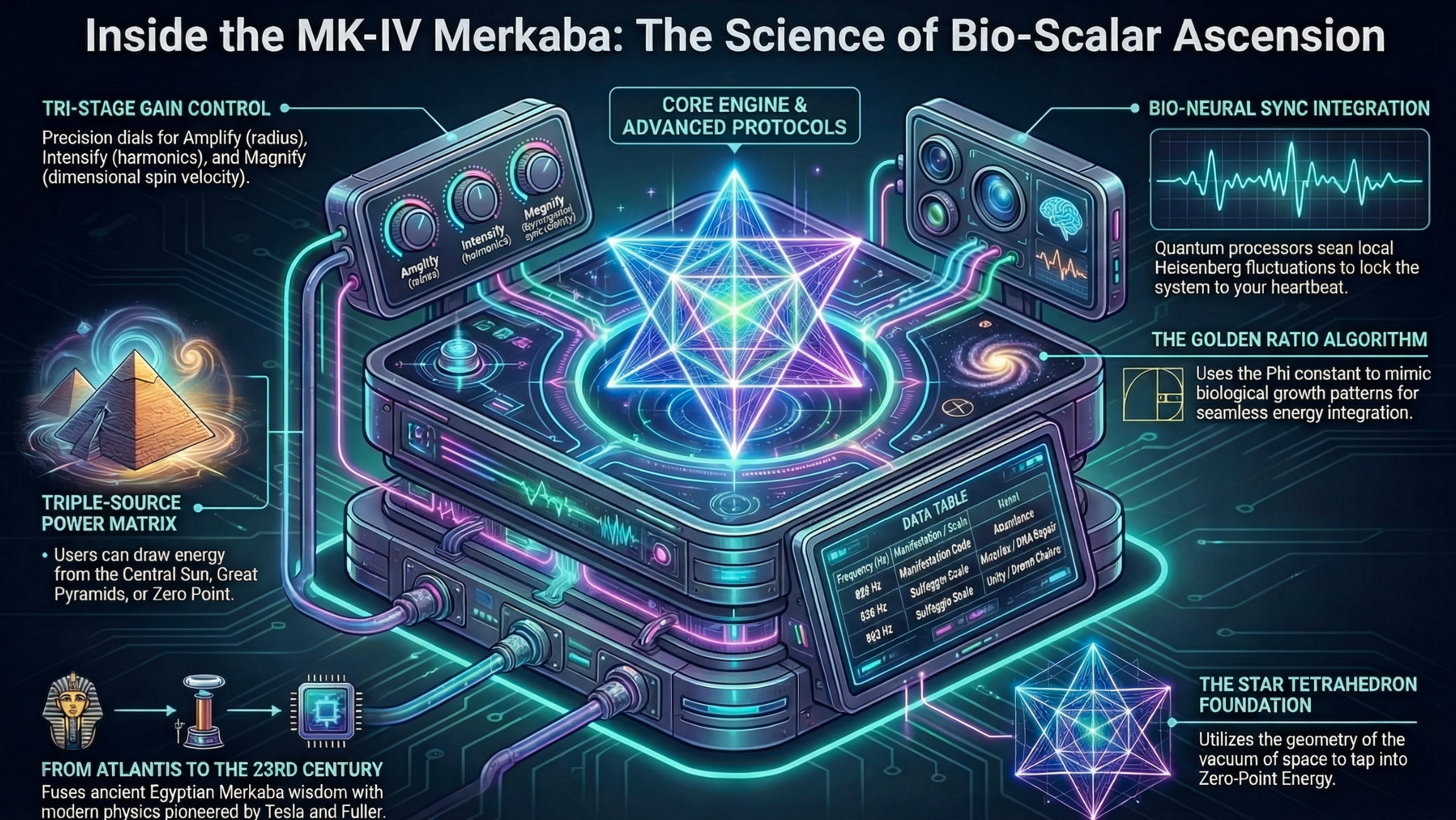 In an age of rising entropic noise—EMF, psychological stress, cognitive overload—maintaining a coherent bio-field matters. MK-IV doesn’t merely “shield.” It actively entrains your field toward harmonic structure using a Star Tetrahedron model and a modern, deliberate operating workflow.